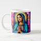 Virgin Mary Oración Vibrante Floral Gigante Café Mug