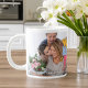 Modern "we love you mom" bright colors graphic with 2 photos and custom text giant coffee mug.