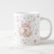 Whimsical Bunny Teapot Floral Spring Giant Coffee Mug. This design features a delightful whimsical bunny nestled within a pink teapot, surrounded by spring blossoms and green foliage. This floral pattern brings a touch of spring magic to your everyday sips. Perfect for tea, coffee, or hot cocoa, it makes a delightful gift for Easter, Mother's Day, birthdays, or any occasion for a bunny lover.