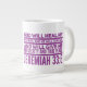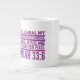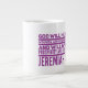 Jumbo Algunos días, una taza de jue de tamaño normal no sirve. Cuando necesites un toque extra de cafeína, saca esta taza gigante de café de Zazzle. Tiene capacidad suficiente para una medida Venti (20 onzas). ¡Y también la pudes usar para tomar sopa, cereales o incluso helado! Esta taza gigante cuenta con un asa en forma de "C" para mayor comodidad. Dimensiones: Altura: 4,5" Diámetro: 3,9" Capacidad: 20 onzas Caja fuerte de microondas y lavavajillas Construcción fuerte, cerámica Cumple o excede los requisitos de la FDA para la seguridad de los alimentos y bebidas Impresión a petición en Reno, NV Designer Tip: Para garantizar la impresión de máxima calidad, tenga en cuenta que el área de diseño de personalizable de este producto mide 4" de alto x 10,5" de ancho