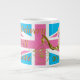 Will Kate real bebé recuerdo de la taza 1 para un chica. El fondo es una bandera británica personalizada de Union Jack en rosa pastel y azul y en primer plano un lindo personalizado de princesa se sienta en un carro dorado. Palabras leídas Entrega real para Wills y Kate 2013. Trae tu taza de nacimiento real aquí. También disponible para bebés y mellizos