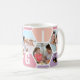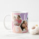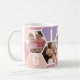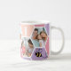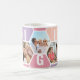 Honeycomb coffee mug, personalizado con 5 de tus fotos favoritas e impreso con un nombre de 4 letras, como GIGI. El diseño presenta un collage de fotos en un sorbete de verano de color rosa lila y melocotón, con una adorable abeja. Si desea cambiar los colores, haga clic en "personalizar más adelante" y haga clic en cada hexágono que desee cambiar.