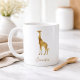 Un increíble tazón de café, este diseño presenta una jirafa dorada con tu nombre escrito bajo una letra cursiva. ¡Personaliza el tuyo hoy!