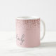 Girly Rose Gold - Taza de café o taza con monograma y letra inicial de metal cepillado con brillo rosa claro. Esto hace que el regalo perfecto para cumpleaños de 16 años, boda, despedida de soltera, aniversario, baby shower o fiesta de soltera para alguien que ama el lujo glamoroso y los estilos chic.