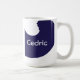 Un giro azul y blanco, esta taza de café muestra el texto/nombre en un divertido tipo de letra blanco. Elija entre una variedad de tazas. ¡Personaliza el tuyo hoy!