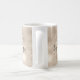 Este elegante tazón de café personalizado presenta su monograma y nombre en un moderno guión gris blanco y carbón vegetal, en un brillante fondo de Relieve metalizado y purpurina de imitación al oro del champán.