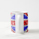 Volar la bandera del Reino Unido con este divertido diseño de Union Jack que incluye estrellas diseminadas sobre un estilizado fondo de patrón de "aspecto secuencial". Mug con un diseño de personalizable rojo, blanco, gris plateado y azul para que puedas personalizar con tu propio texto, imágenes e ideas. Tenga en cuenta que esta es una imagen de arte digital impresa. El producto no brilla ni contiene purpurinas o secuencias reales.