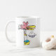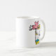 Este tazón de café con globo aerostático Retro Bird presenta un globo de pájaro rosado de alto vuelo con algunos adorables pasajeros de pajaritas flotantes durante el trayecto. Un regalo de cadera y colorido para los amantes de las aves. Dibujado a mano y diseñado por Quirkytown Creative. Imagen ©2024 Doug Davis. www.zazzle.com/store/QuirkyTownCreative