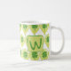 Este diseño temático de St. Patrick es un afortunado globo de monograma Coffee mug, con trébol verde de cuatro hojas divertidos y coloridos sobre un fondo blanco. En el centro hay un lugar para insertar su monograma inicial. ¡Personaliza el tuyo hoy! Material gráfico creado por: AMBilustrations http://www.etsy.com/shop/AMBillustrations/