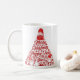 Celebrate the entire holiday season with this unique Gnome Christmas Tree Mug! The design cleverly forms a festive Christmas tree shape out of snowflakes, stars, and the message "Merry Christmas & Happy New Year." Adorable Nordic Gnomes (Tomte) are nestled throughout the design—one peeking from a sack at the top, and two resting below—making it a truly whimsical holiday scene. This mug is perfect for enjoying your favorite coffee, tea, or hot cocoa from the start of Christmas right through the New Year. It makes a fantastic, unique Stocking Stuffer or a thoughtful gift for any Gnome Lover or anyone who appreciates clever, festive design!