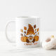 Gnome Enjoying Coffee Time surrounded by pumpkins on a coffee mug.