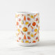 Esta es una hermosa taza con gnomos, calabazas y hojas en colores otoñales sobre un fondo blanco. Excelente para mantenerte caliente mientras el clima empieza a enfriarse bebiendo tu bebida caliente favorita.