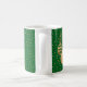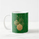 This original graphic design features Christmas baubles and stars in golden colour on a green background