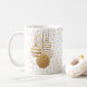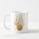 This original graphic design features Christmas baubles and stars in golden colour on a white background