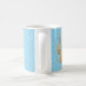 This original graphic design features Christmas baubles and stars in golden colour on an ice blue background