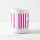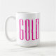 Gold Digger coffee mug. Neon pink typography template. Modern cup with big letters. Personalize with your own text. Funny gift idea for friend, girlfriend, wife, bride, boss, coworker, colleague etc.