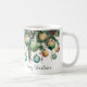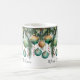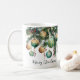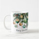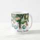 Pine branches, green and gold Christmas ball ornaments and ribbons with Merry Christmas, these mugs are perfect for your kitchen or to give as gifts. MATCHING items in our collection.