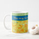 Un tazón de café para personalizar, con un patrón de daffodils dorados, de un diseño acuarela pintado a mano por Judy Adamson.