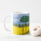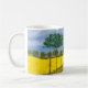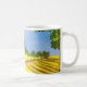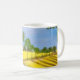 Golden Fields and Path captures a peaceful countryside road where vibrant yellow fields meet deep, long tree shadows under a soft blue sky.
