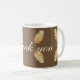 Los colores profundos y ricos del otoño le dan la bienvenida con esta taza de apreciación. El patrón presenta hermosas plumas amarillas y marrones que se curva creando un patrón sofisticado en la taza. Las palabras "gracias" se pueden personalizar para adaptarlas a sus necesidades.