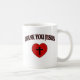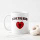 La frase, "le agradece Jesús" escrito en negro en rojo sobre un corazón rojo con la cruz simple en el centro.