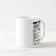 Taza De Café Graciosa tarjeta postal de datos de nutrición por