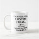 Divertida taza con texto negro en blanco, "No soy realmente un fanático del control. Déjenme mostrarles cómo hacer eso". Gran regalo de broma para el fanático del control en tu vida. Póngase en contacto con nosotros para obtener ayuda sobre la personalización o para solicitar productos coincidentes.