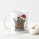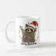 Un divertido diseño de vacaciones de invierno de lindo mapache enredado en luces de Navidades, que dice: "Feliz Navidad"