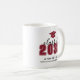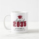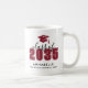 Una elegante y moderna taza de graduación con un icono de gorra de graduación en la parte superior, con "Clase de" y el año que se muestra justo debajo. El nombre del graduado y la escuela aparecen debajo en fuentes limpias y elegantes, creando un diseño pulido y elegante. El diseño rodea la taza en dos lados, lo que garantiza que se vea genial desde cualquier ángulo.