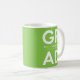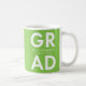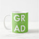 Moderno tazón de café para graduación con "Grad" en negrita con un fondo verde lima o color de su elección. Personalice la taza de graduación agregando el nombre y el año de graduación. ¡La taza de café es un gran regalo personalizado para graduados de secundaria y universitarios!