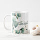 Taza de café de graduación con verde de eucalipto moderno y delicados acentos dorados, diseñada para agregar un toque coherente y elegante a tus accesorios de graduación. Un acento versátil y personalizable para regalos de graduados de secundaria o universitarios.