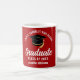 Este moderno tazón de graduación de personalizado rojo y blanco presenta una tipografía elegante de su nombre de instituto o universidad para la clase de 2025. Personalizar con tu año de graduación bajo el guión manuscrito de la moda y gorro negro para un gran regalo personalizado para graduados.