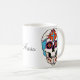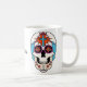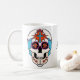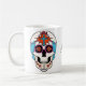 Esta obra gráfica muestra un cráneo de azúcar ilustrado, o calavera, decorado con cuentas y flores, así como una cruz cristiana en cada frente. Este motivo se usa comúnmente durante las celebraciones del Día de los Muertos o el Día de los Muertos, festividad latinoamericana.