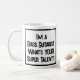 Divertido eslogan en una taza de café que dice "Soy un guitarista grosero. ¿Cuál es TU supertalento?". Coffee Mug para un Guitarista de Bass o un guitarrista de Bass. Texto en negrita en blanco y negro.