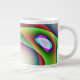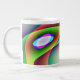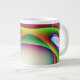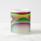 Esta impresionante taza presenta un patrón multicolor de colores psicodélicos brillantes alrededor de una estructura central de forma de huevo. Se parece a una fantasía de una nave espacial alienígena lista para secuestrar una terrina.