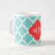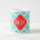 Taza De Café Grande Aqua Marroquí #5 Rojo de coral 3 Monograma inicial