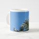Taza De Café Grande Árbol de pino con puntas de nieve en cielo azul