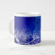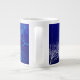 Arte de vacaciones de invierno con un elegante patrón de ramos de pino y pinecones en azul y blanco sobre un fondo de azul profundo y violeta. Haga clic en Personalizar para agregar su nombre o mensaje, cargar una foto, e incluso guardar su diseño para más adelante.