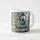 Una estatua de Buda decora esta útil taza de café. Las tazas de café cerámico como esta hacen grandes regalos baratos.