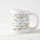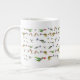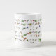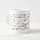 Múltiples imágenes de colibríes dulces sobre un fondo blanco puro envuelven esta enorme taza.