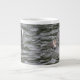 Esta increíble taza muestra una fotografía de un Coot y su chica nadando en un río de marea. La hembra es gris con un parche blanco en la cabeza y ojos rojos, mientras que la pequeña y esponjosa chica es gris pálido con un frente blanco.
