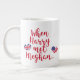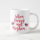 NewParkLane - El Boda real Jumbo Mug, con la divertida cita "Cuando Harry conoció a Meghan", en la tipografía de escritura roja, y las banderas del Reino Unido y los Estados Unidos en formas cardíacas. Proteja esta colección para ver los elementos coincidentes. ¿Tienes deseos de diseño personal específicos? ¡Siéntete libre de contactarme!
