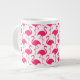 Tazas enormes del café y de la bebida del flamenco rosado incluyendo un flamenco lindo por todo modelo en rosa y blanco. Beba su café, té, o bebida preferido en estilo con color de fondo y un tacto de la naturaleza tropical.