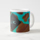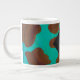 Taza De Café Grande Monograma de vaca marrón y estampado en azul turqu