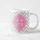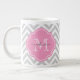 Taza De Café Grande Monograma del Personalizado de Chevron gris y rosa