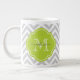 Taza De Café Grande Monograma del Personalizado de Chevron gris y verd