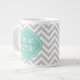 Taza De Café Grande Monograma del Personalizado Gris y Aqua Chevron