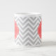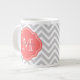 Taza De Café Grande Monograma del Personalizado Gris y Coral Chevron
