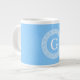 Taza De Café Grande Monograma inicial del marco de la llave griega azu