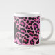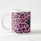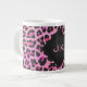 Taza De Café Grande Monograma Leopardo Negro y Estampado Rosa Fuerte